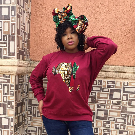 Africa shape sweatshirt with matching head-tieRegular price $55.00 USDRegular priceUnit price / per-