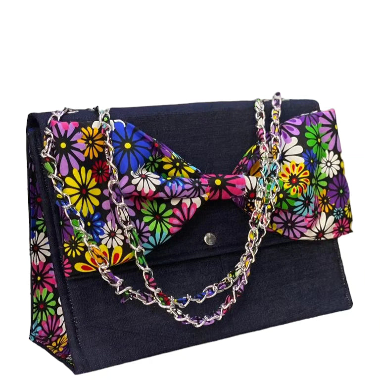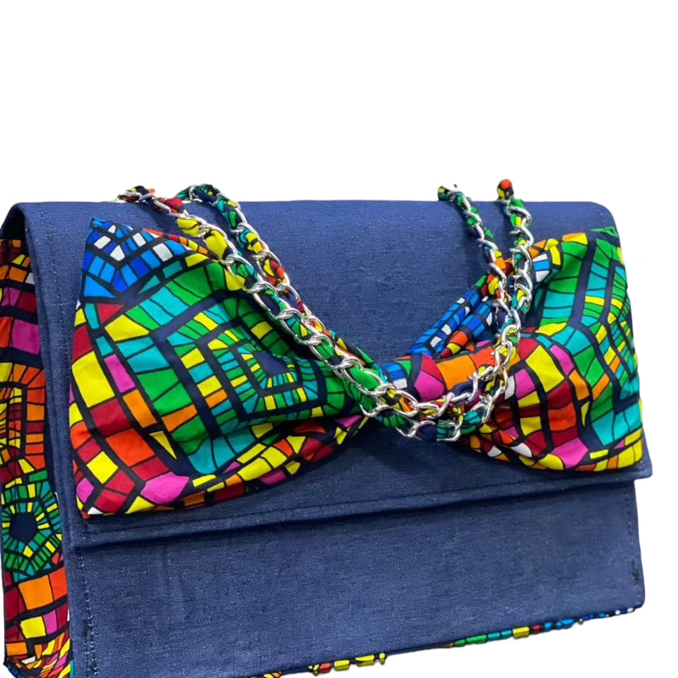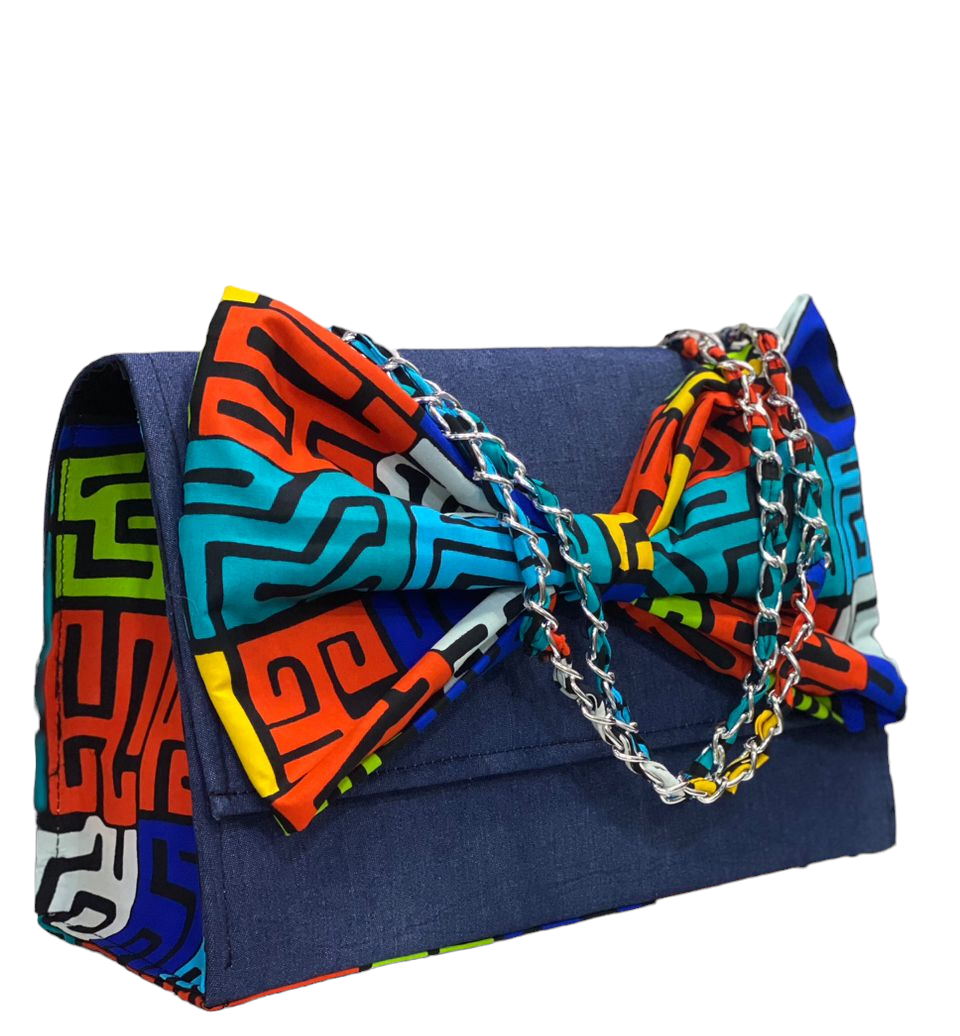 Show of the culture with this beautifully handcrafted bag. 15 inches fashion bag, made out of denim and quality Ankara, has inner pocket and lined with suede