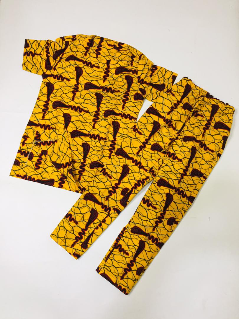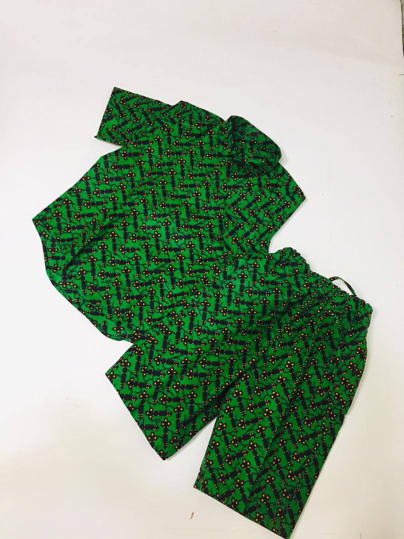 Style your young king with our Ankara shorts or pants set.