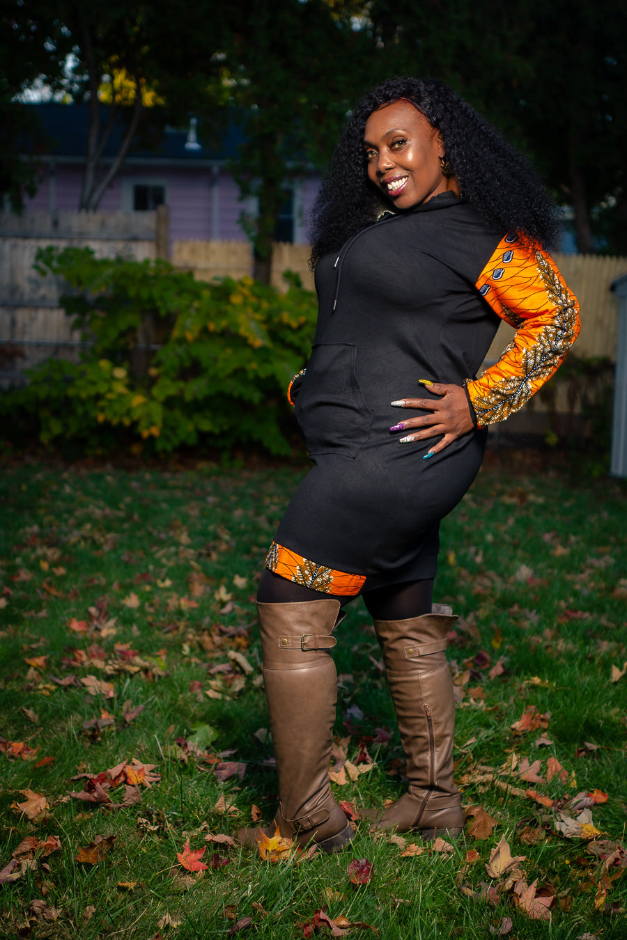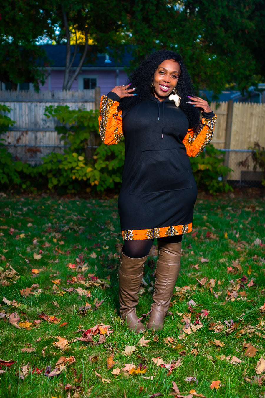 Stand out in style and confidence and be comfortable with this hoodie dress.